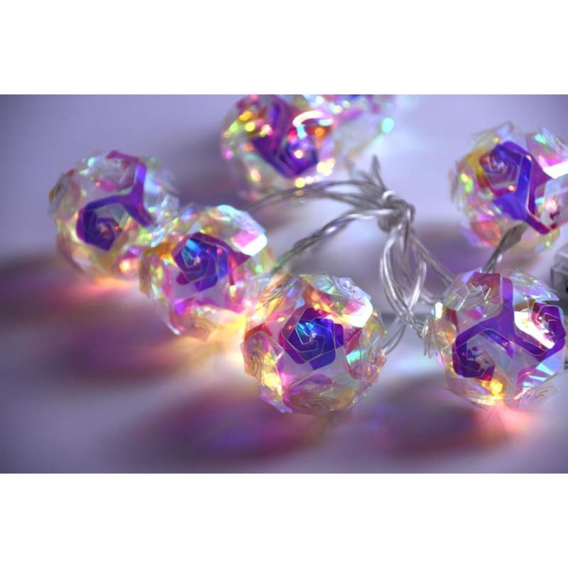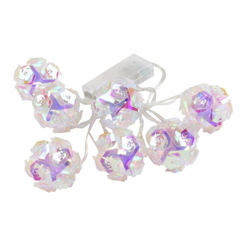 Dekorativní světelný led řetěz na baterie vhodný pro interiérové použití do bytu. Celkem 10 kuliček s prvky připomínajícími květiny. Napájen ... Více v detailním popisu níže.