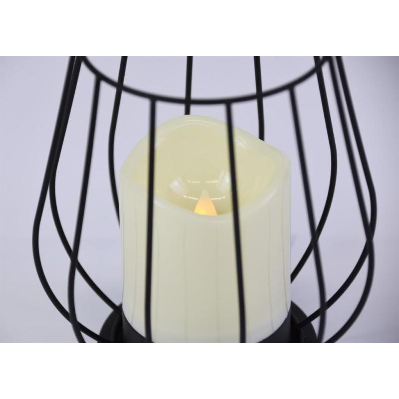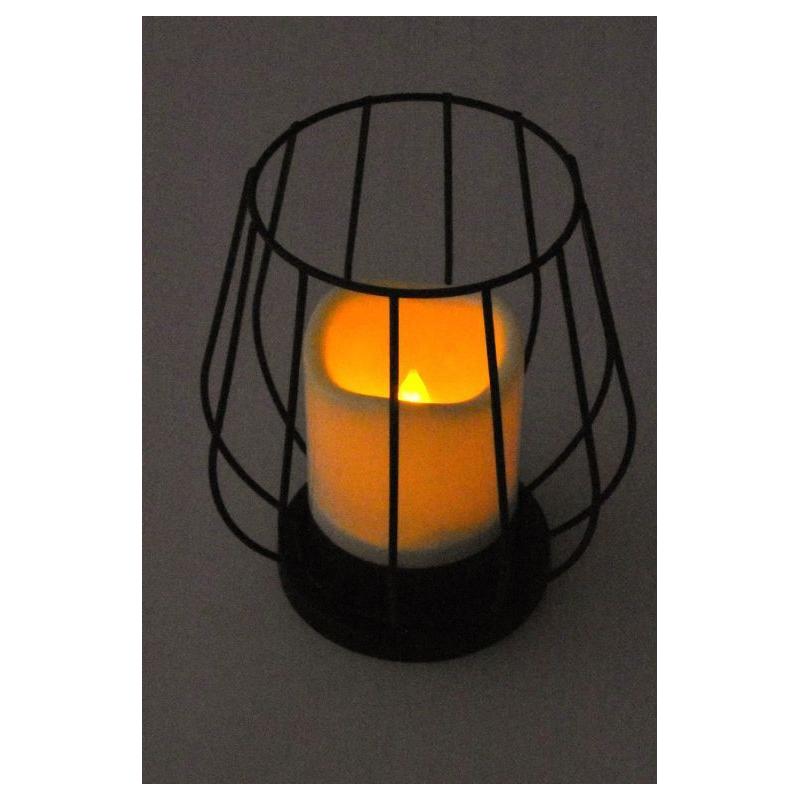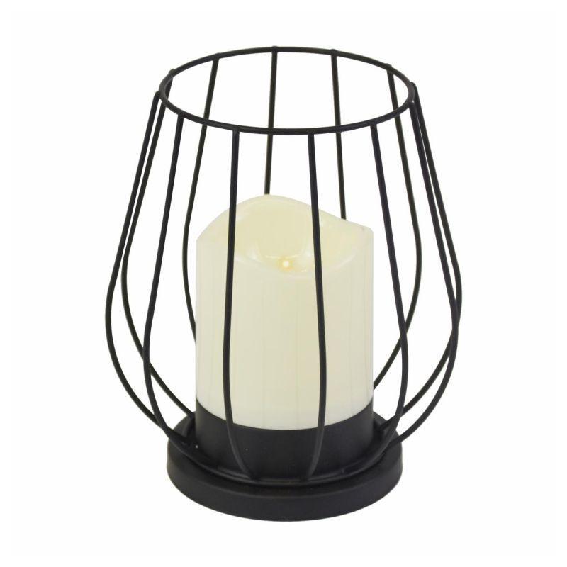 Moderní kovový svícen s elektrickou svíčkou na baterie, který je vhodný do nejrůznějších prostor v bytě – hodí se na okenní parapet, na skříňku, na stůl, na noční stolek, ale případně i na podlahu do rohu místnosti, nebo pro nasvícení schodů. Jeho černobílý design dodává prostoru sofistikovaný nádech a snadno se začlení do různých stylů bydlení. Provedení s výškou 17 cm a průměrem 15 cm.