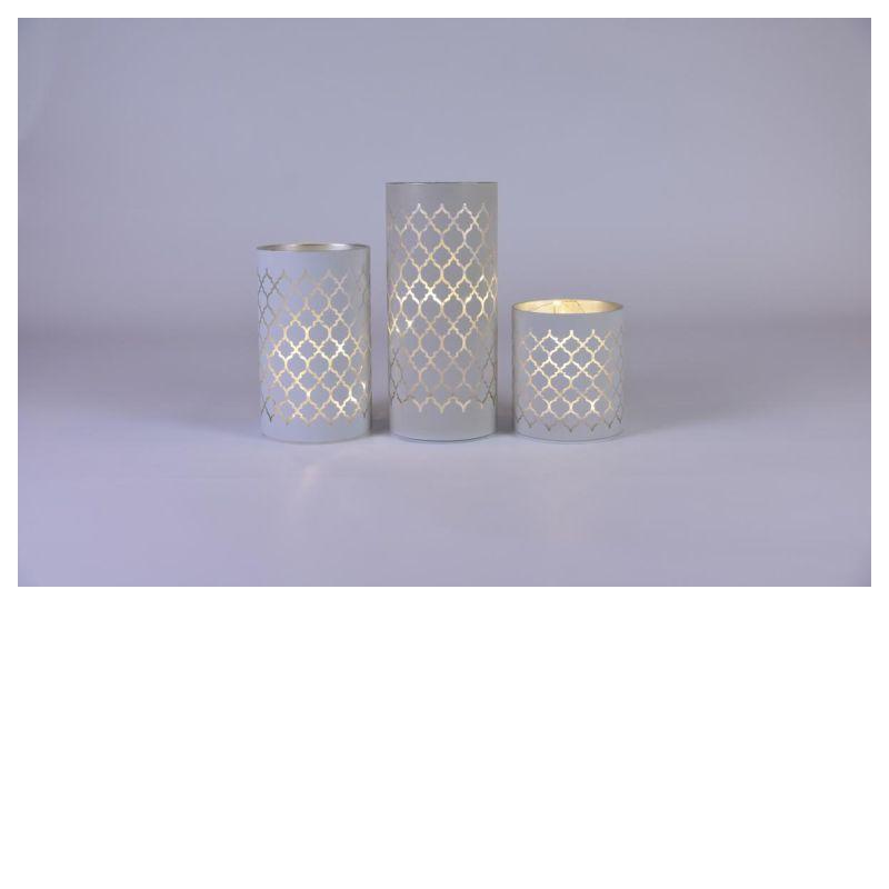 Sada 3 dekoračních luceren v bílé barvě (výška 10, 15 a 20 cm), které jsou ideální pro vytvoření příjemného prostoředí v obývacím pokoji, ložnici, kavárně, restauraci apod. Napájení na baterie 3xAA (klasické tužkové). Časovač 6/18 hodin.