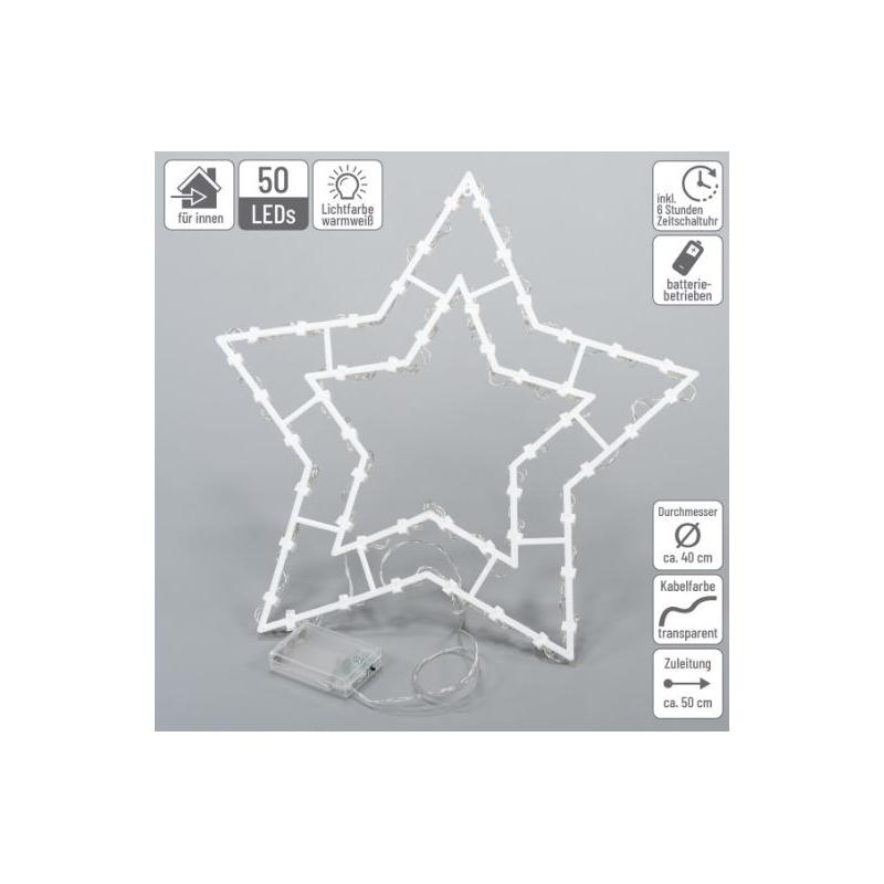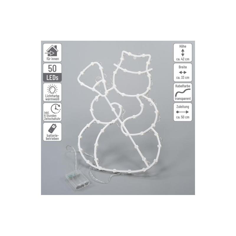 Sada 2 kusů svítících dekorací (sněhulák a hvězda) výšky 42 a 40 cm, které jsou určené především pro umístění do okna. Napájení na 3 AA baterie (klasické tužkové), takže je možno použít dekoraci i mimo dosah zásuvek. Materiál obsahuje svítivé LED diody, které po zapnutí rozzáří figurky i blízké okolí. Sněhulák i hvězda jsou složené z 35 úsporných LED diod.