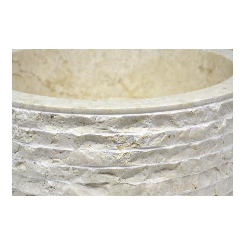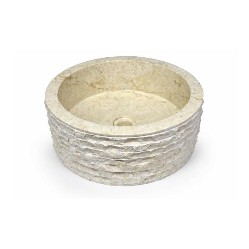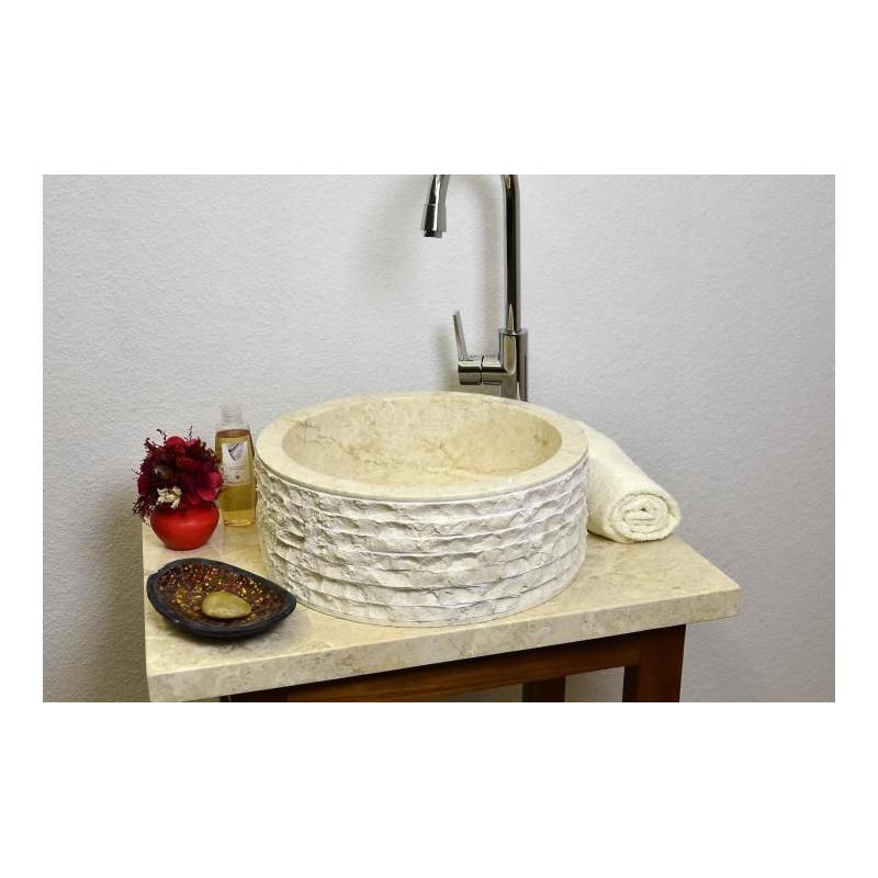 Luxusní mramorové umyvadlo (pravý přírodní mramor) ve světlém krémovém odstínu. Kruhové provedení na desku s vnitřním průměrem cca 40 cm a vnějším cca 46 cm.