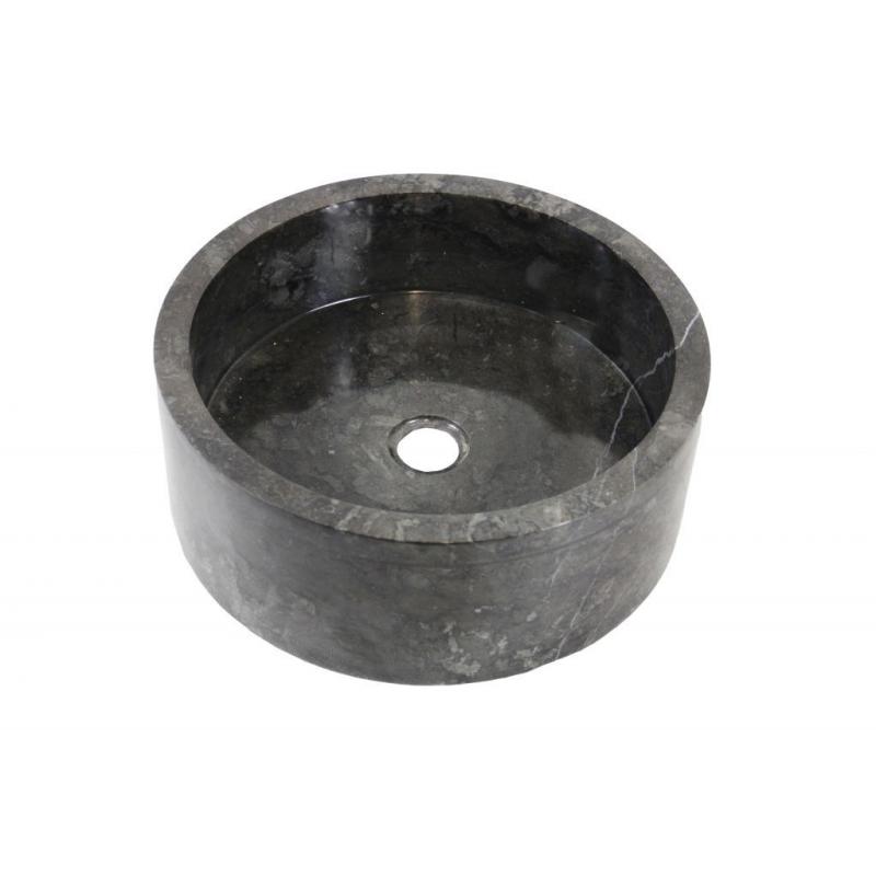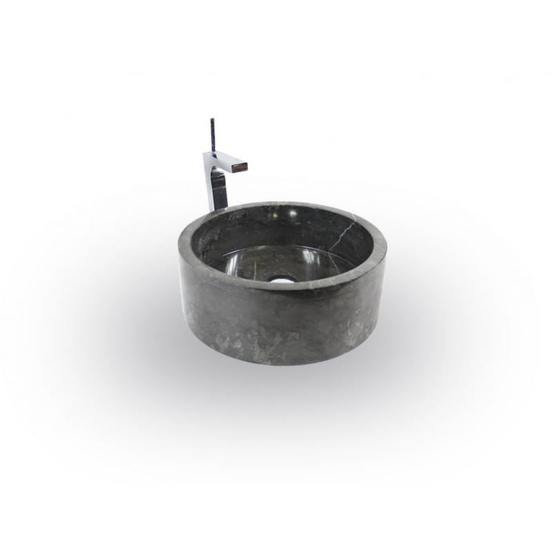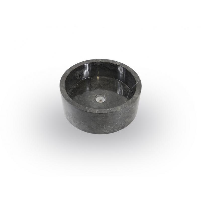 Luxusní mramorové umyvadlo v černém odstínu s jemným žilkováním kamene. Kulatý tvar o průměru 40 cm. Provedení na desku.