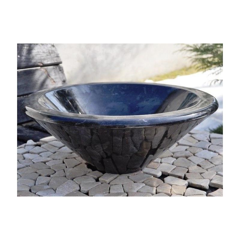 Luxusní kamenné umyvadlo vyrobené z jednoho kusu mramoru černé barvy. Menší kruhové kónické provedené s průměrem 35 cm.