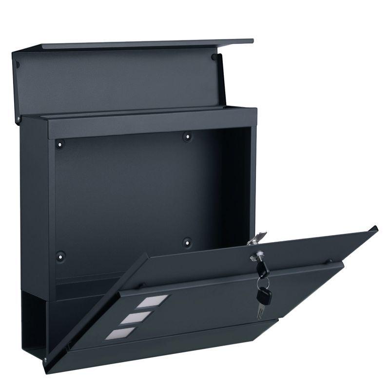 Moderní reprezentativní poštovní schránka na dopisy, pohlednice, menší balíčky a noviny. Určená pro umístění na vhodnou svislou plochu jako je plot, branka, nebo fasáda domu. Provedení o rozměrech 37x37x10,5 cm v antracitové barvě (tmavě šedá).