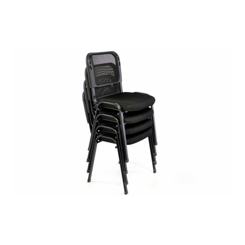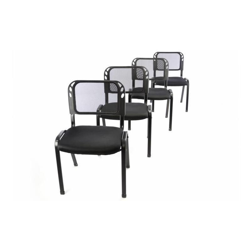 Cenově výhodná sada 4 kusů pevných kovových židlí černé barvy s měkkým polstrovaným sedákem a prodyšným opěradlem, které jsou vhodné do nejrůznějších interiérů – perfektně se hodí především do kanceláří, kongresových sálů, čekáren, ale i pro domácí použití.