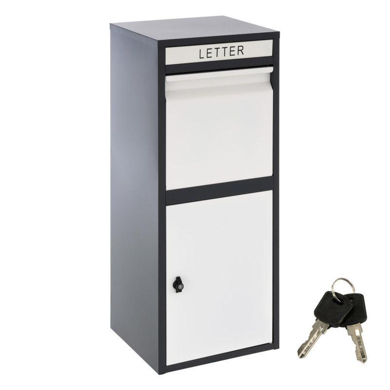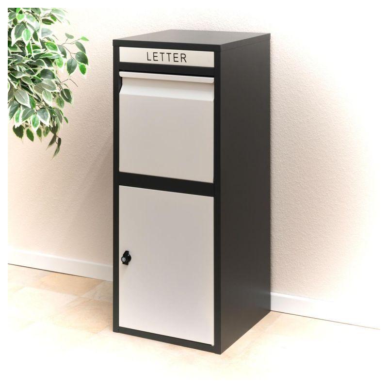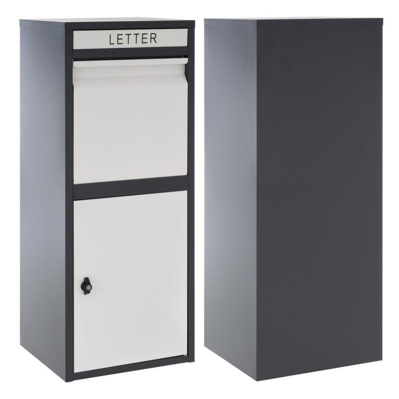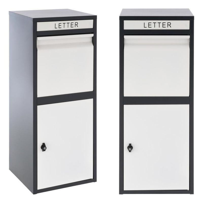 Stojanová poštovní schránka určená na dopisy i balíky, která je vhodná pro vnitřní i venkovní použití. Díky svému objemu je předurčena především pro firmy, ale je vhodná i pro rodinné domy. Rozměry 102x41x38 cm (v x š x h). Provedení v černo-bílé kombinaci.