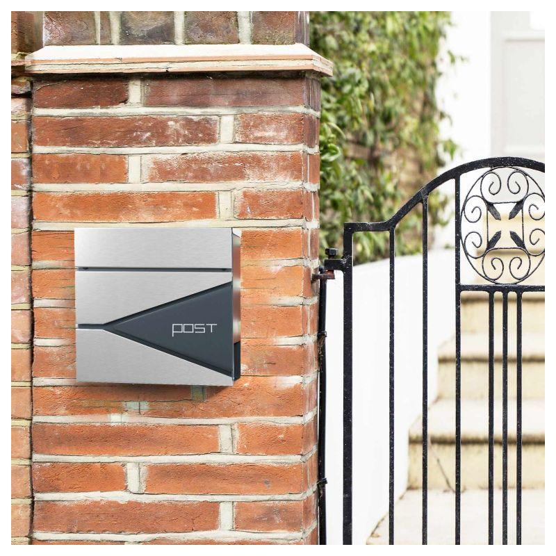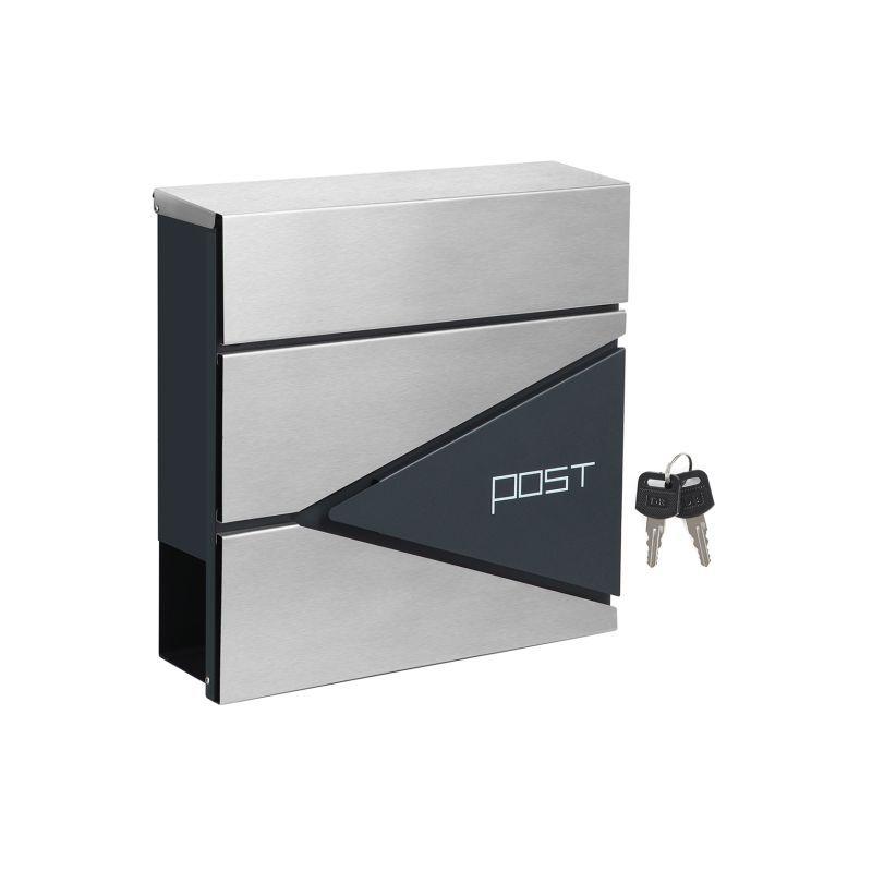 Luxusní venkovní desingová poštovní schránka v moderním provedení určená především pro rodinné domy a firmy. Splní nejen praktické účely, ale rovněž vytvoří reprezentativní prvek. Kombinace stříbrné a antracitové barvy s rozměry 37x37x10,5 cm.