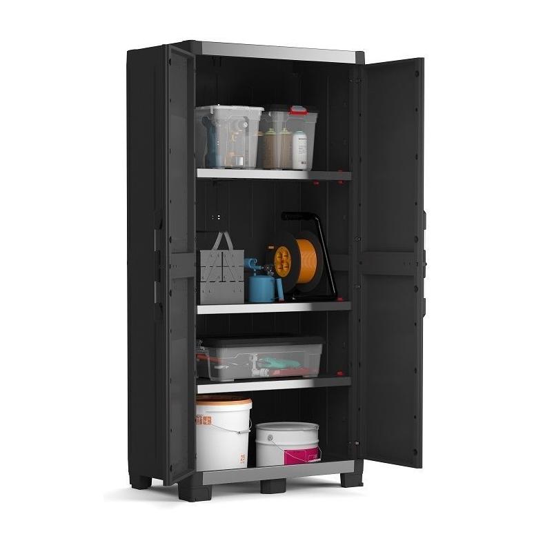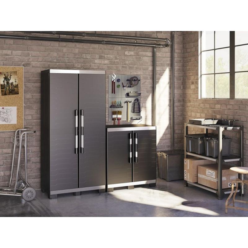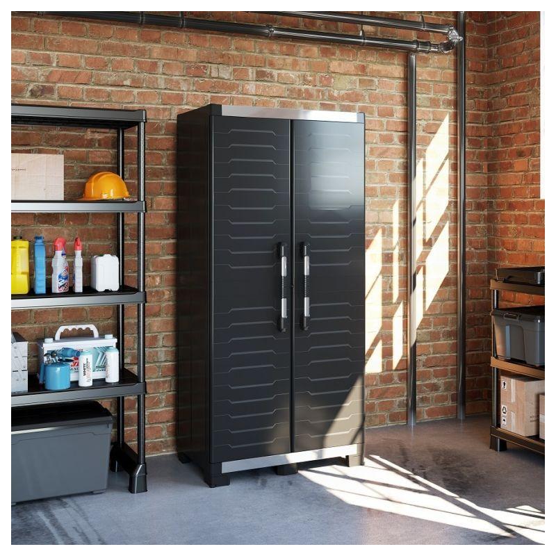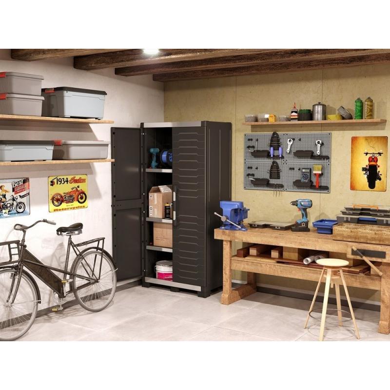 Tato vysoká plastová skříň je vhodná pro široké spektrum aplikací, včetně dílen, garáží, provozních hal, ale i zastřešených teras nebo zahradních domků.