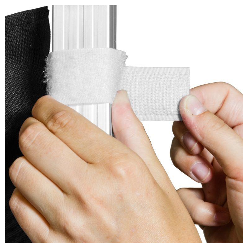 Montáž a demontáž je velmi rychlá a jednoduchá – boční stěnu jednoduše ke stanu upevníte systémem závěsných háčků a proužků na suchý zip.