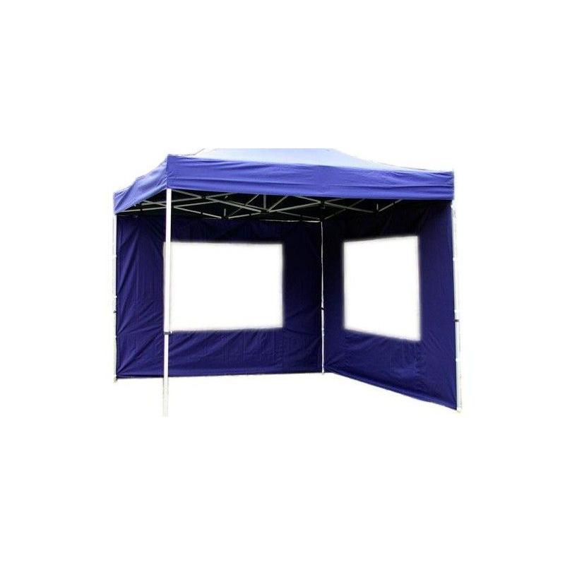 Sada 2 kusů bočních stěn modré barvy s okny. Vyrobeny z nepromokavého materiálu (polyester). Stěny jsou určeny pro stany Profi v rozměru 3x3 m, ale je možno použít i na větší stany, jen je třeba zakoupit větší počet kusů.