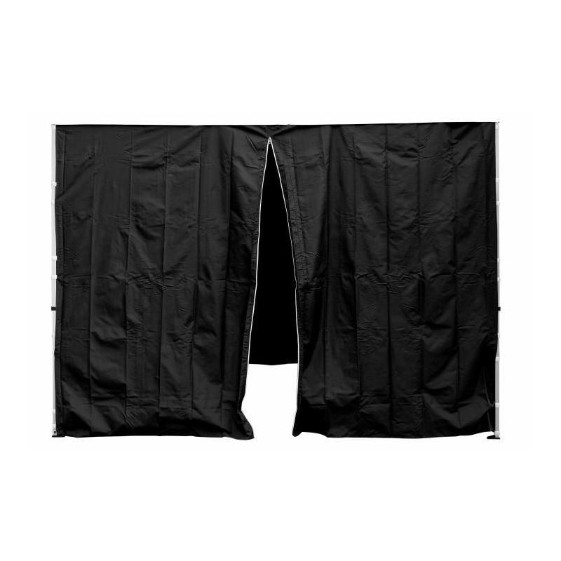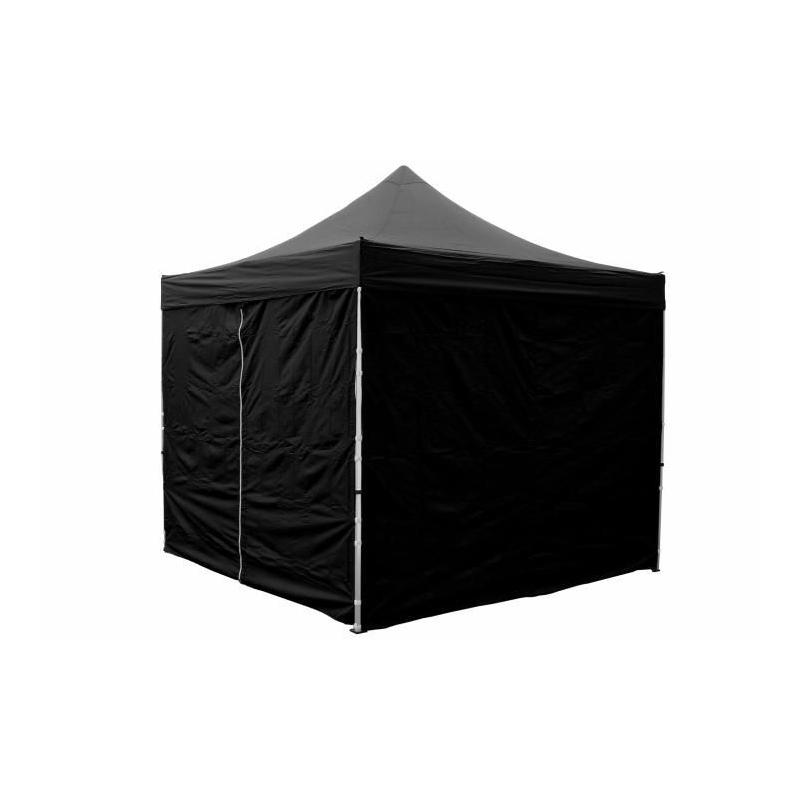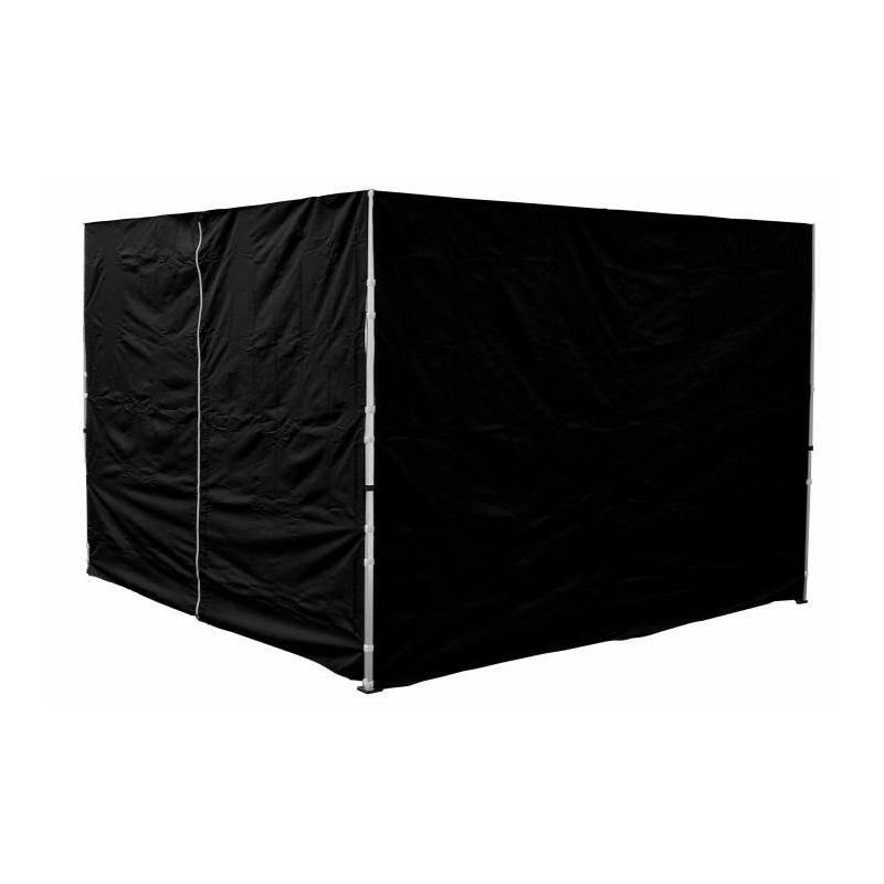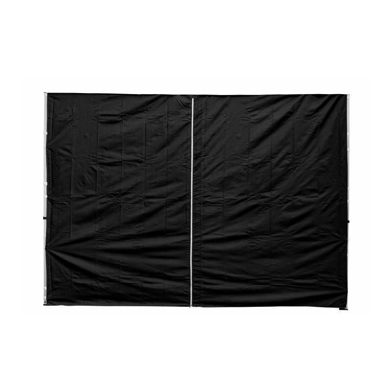 Samostatné boční plachty pro PROFI stany v rozměru 3x3 m černé barvy. Jedna stěna má uprostřed zip a slouží jako vstup do stanu; druhá stěna je bez zipu.