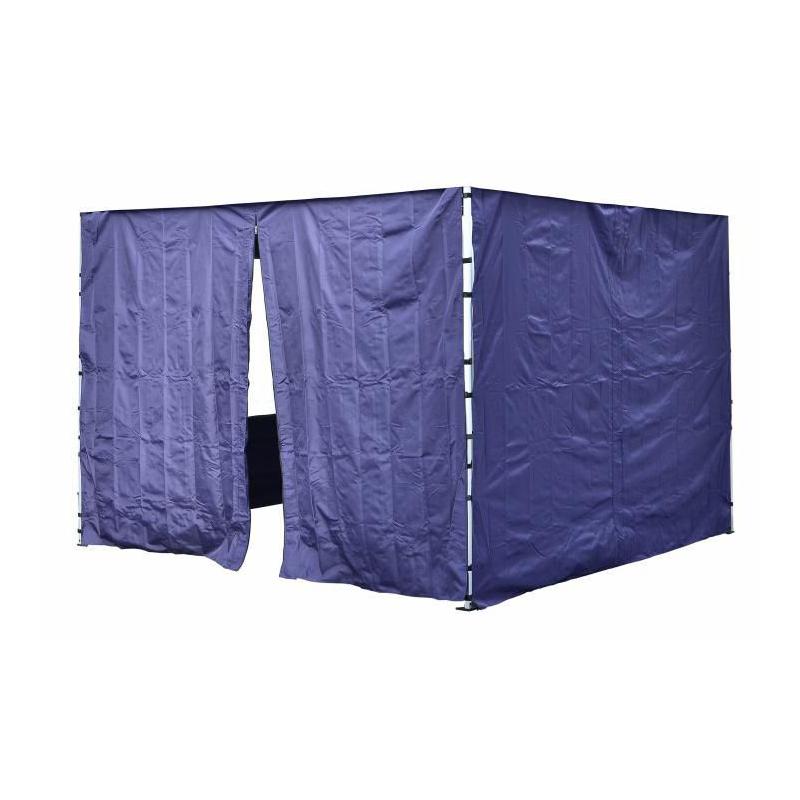 Samostatné boční plachty pro PROFI stany v rozměru 3x3 m v modré barvě. Jedna stěna má uprostřed zip a slouží jako vstup do stanu; druhá stěna je bez zipu.