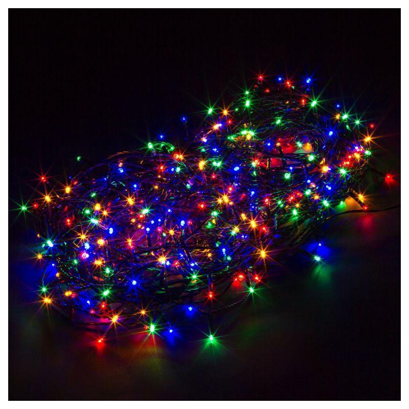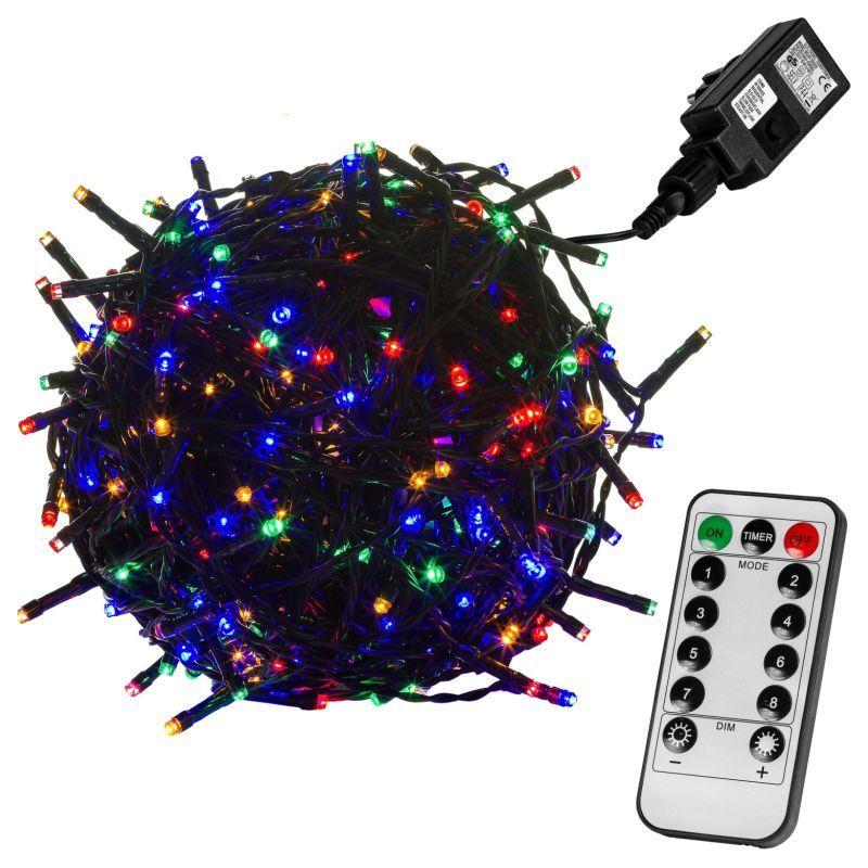Pestrobarevný vánoční světelný řetěz využívající namísto klasických žárovek moderní úsporné LED diody. Tento typ řetězu má celkem 8 světelných funkcí – kromě trvalého svícení nejrůznější druhy blikání včetně časovače, který jej může pravidelně zapínat a vypínat. Řetěz má zelený kabel, je voděodolný (vhodný pro vnitřní i venkovní použití) a délka jeho světelné části je 10 m (napájecí kabel má délku 5 m).
