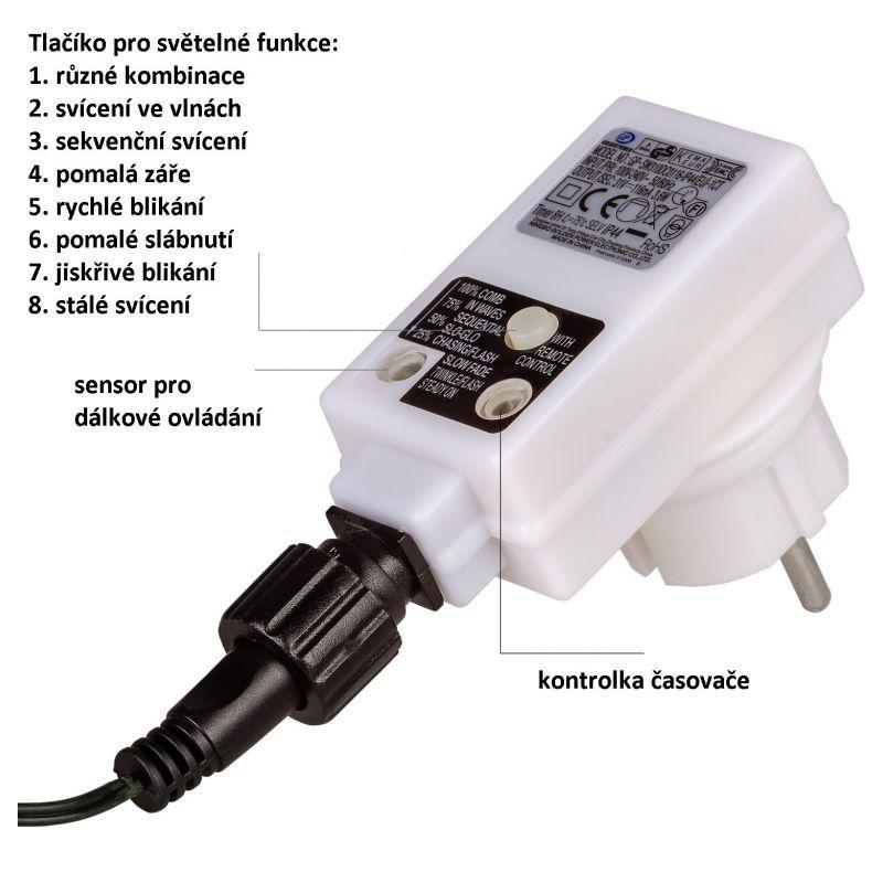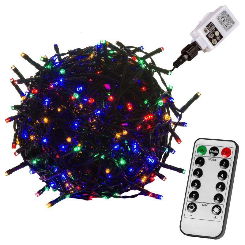 Barevný vánoční světelný řetěz na dálkové ovládání s napájením z klasické elektrické zásuvky 230 V. Voděodolné ... Více v detailním popisu níže.