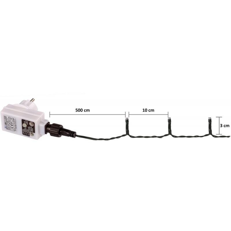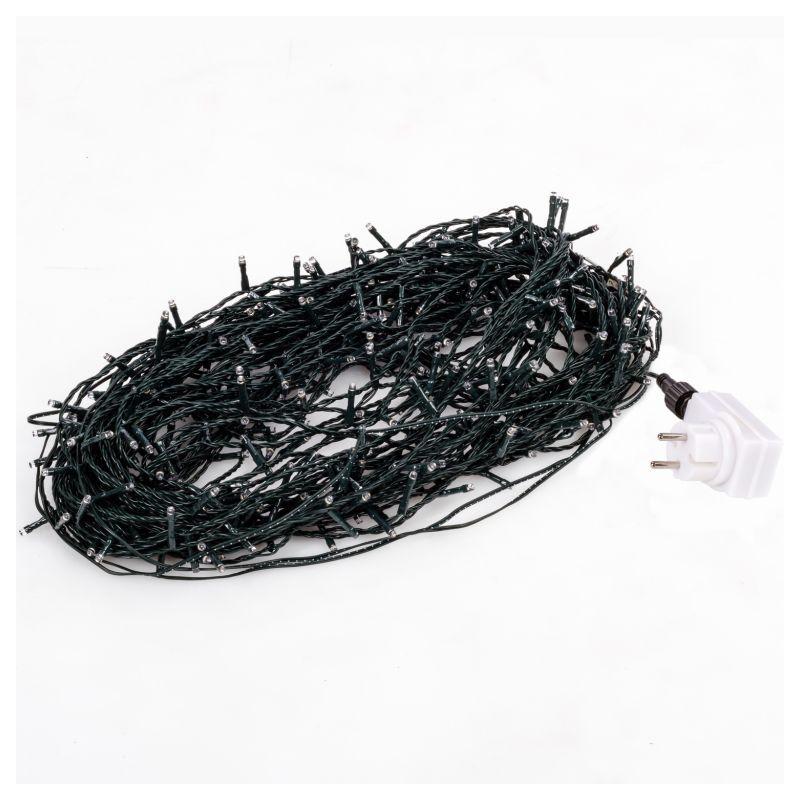 Barevný vánoční světelný řetěz na dálkové ovládání s napájením z klasické elektrické zásuvky 230 V. Voděodolné provedení s krytím IP 44, díky čemuž je vhodný pro vnitřní i venkovní použití. Celkem 400 LED diod; délka 40 m + 5 m napájecí kabel.