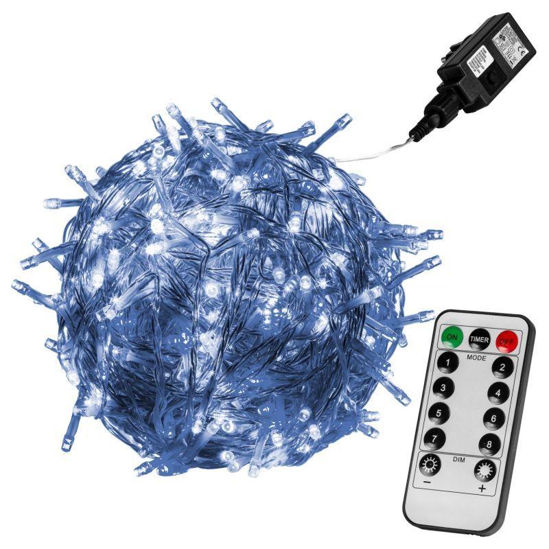 Ovládání prostřednictvím dálkového ovladače, díky čemuž můžete řetěz zapínat, vypínat, měnit jeho jas, nebo nastavovat různé funkce z pohodlí domova, i když máte řetěz samotný umístěný venku (funkce svícení a blikání je možno měnit i přímo na adaptéru do elektrické zásuvky).