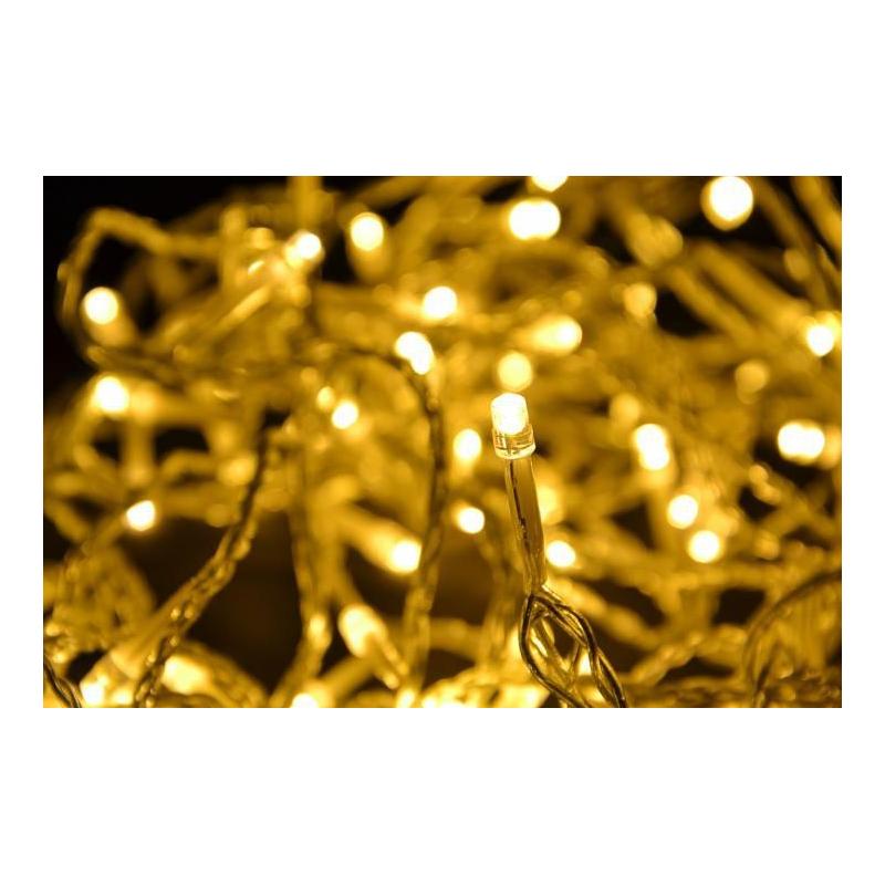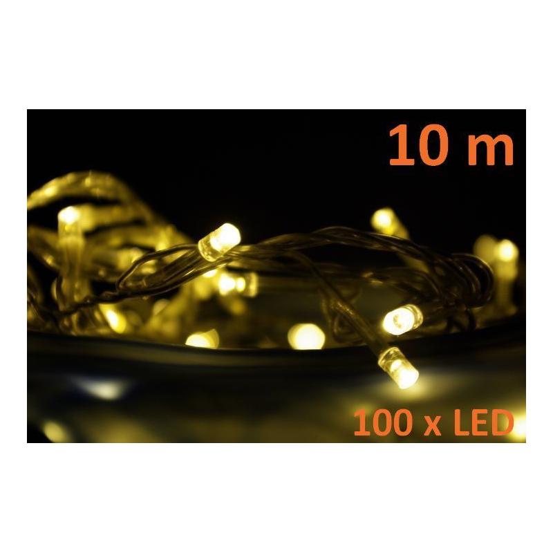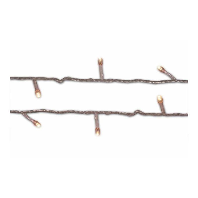 Klasický vánoční LED řetěz určený do vnitřních i venkovních prostor (voděodolné provedení) s napájením z klasické elektrické zásuvky 230V a délkou světelné části 10 m.