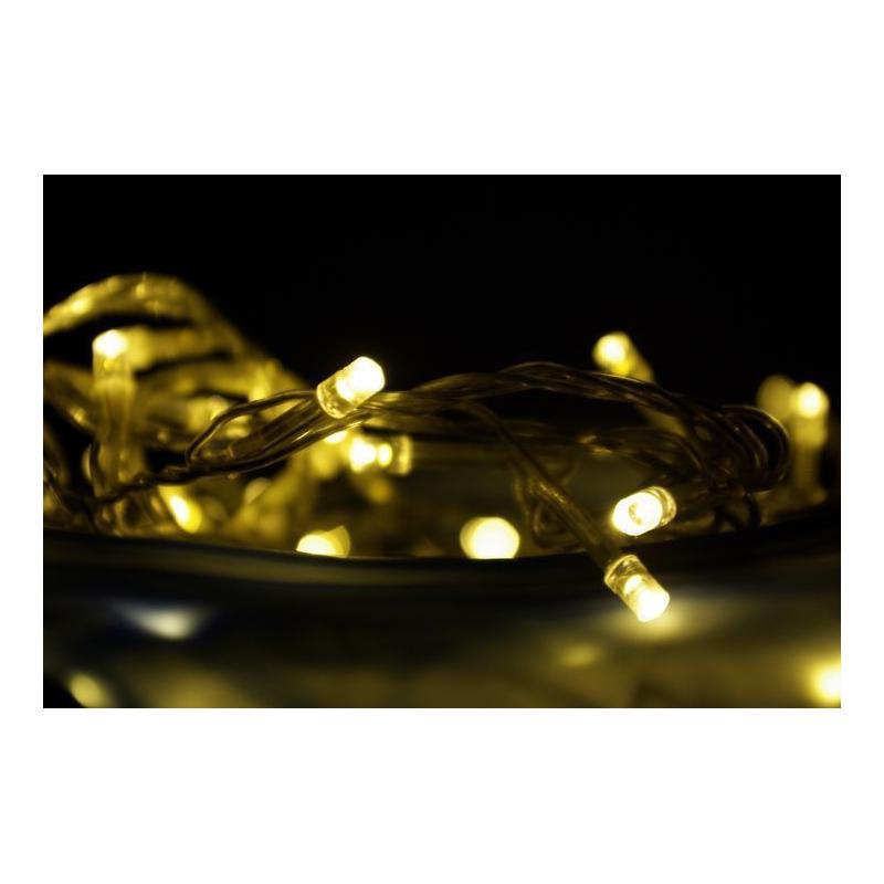 Řetěz svítí teple bílým světlem, které je mírně nažloutlé (podobné světlo jako u klasické žárovky) – působí tak příjemným, teplým dojmem a vytváří hřejivou atmosféru domova.