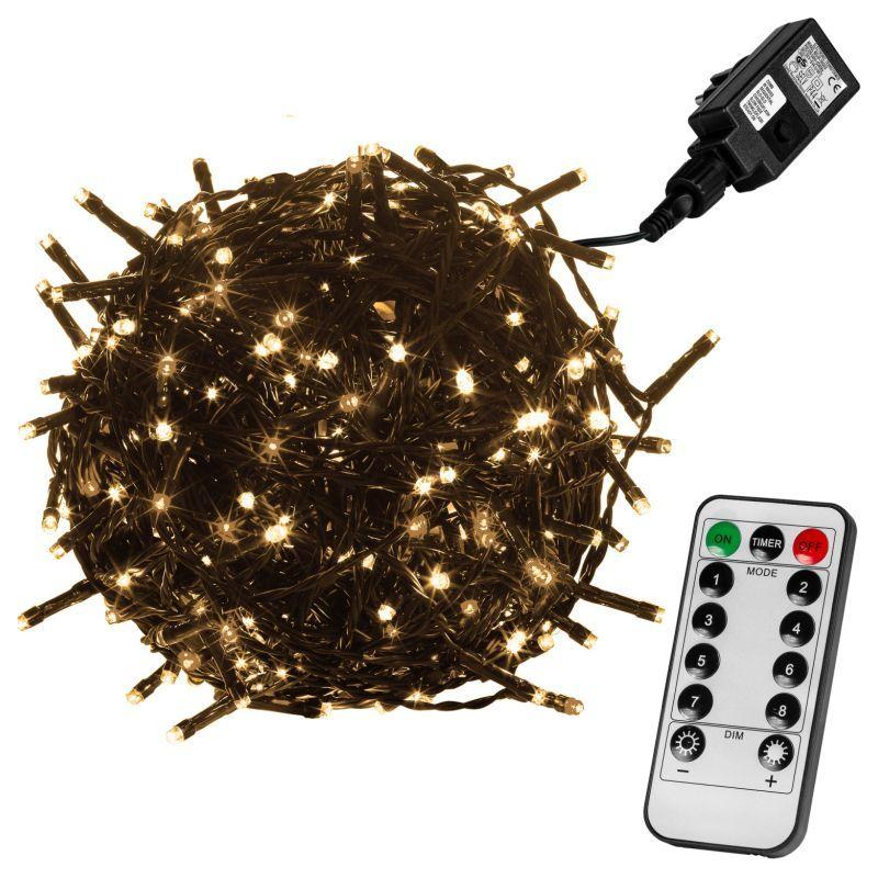 Ovládání prostřednictvím dálkového ovladače, díky čemuž můžete řetěz zapínat, vypínat, měnit jeho jas, nebo nastavovat různé funkce z pohodlí domova, i když máte řetěz samotný umístěný venku (funkce svícení a blikání je možno měnit i přímo na adaptéru do elektrické zásuvky).