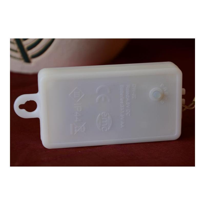 Svítící řetěz z LED diod s délkou 10 m s celkovým počtem 100 LED diod svítící teple bílým světlem. Napájení bateriemi – ... Více v detailním popisu níže.