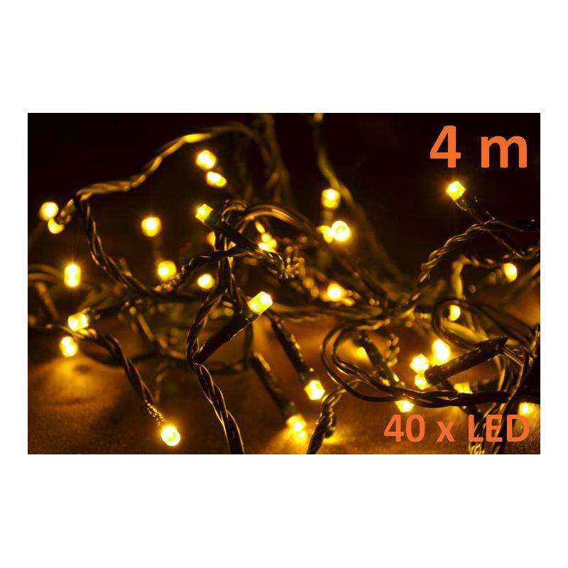 Svítící řetěz z LED diod s délkou světelné části 4 m s celkovým počtem 40 LED diod svítící teple bílým světlem.