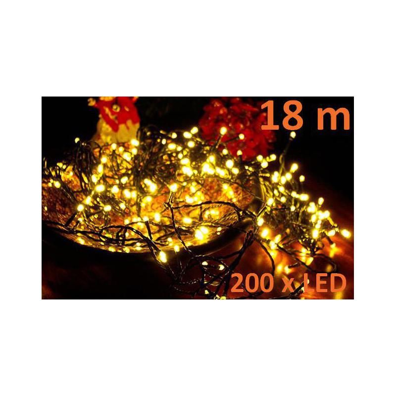 Svítící řetěz nejen na vánoční stromeček s délkou světelné části 18 m s celkovým počtem 200 LED diod svítící teple bílý ... Více v detailním popisu níže.