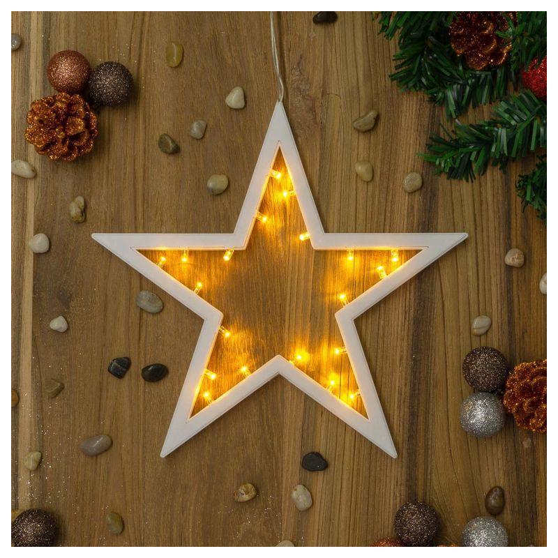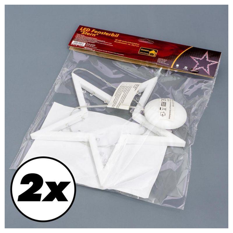 Sada 2 kusů svítících hvězd pro dekoraci interiéru v období vánočních svátků, ale klidně i během celého roku. Hvězdy bílé barvy jsou napájeny bateriemi 3xAA (klasické tužkové) a svítí teple bílým světlem. Průměr hvězdy je cca 25,5 cm. Osvětlení není voděodolné- je vhodné pouze pro vnitřní použití.