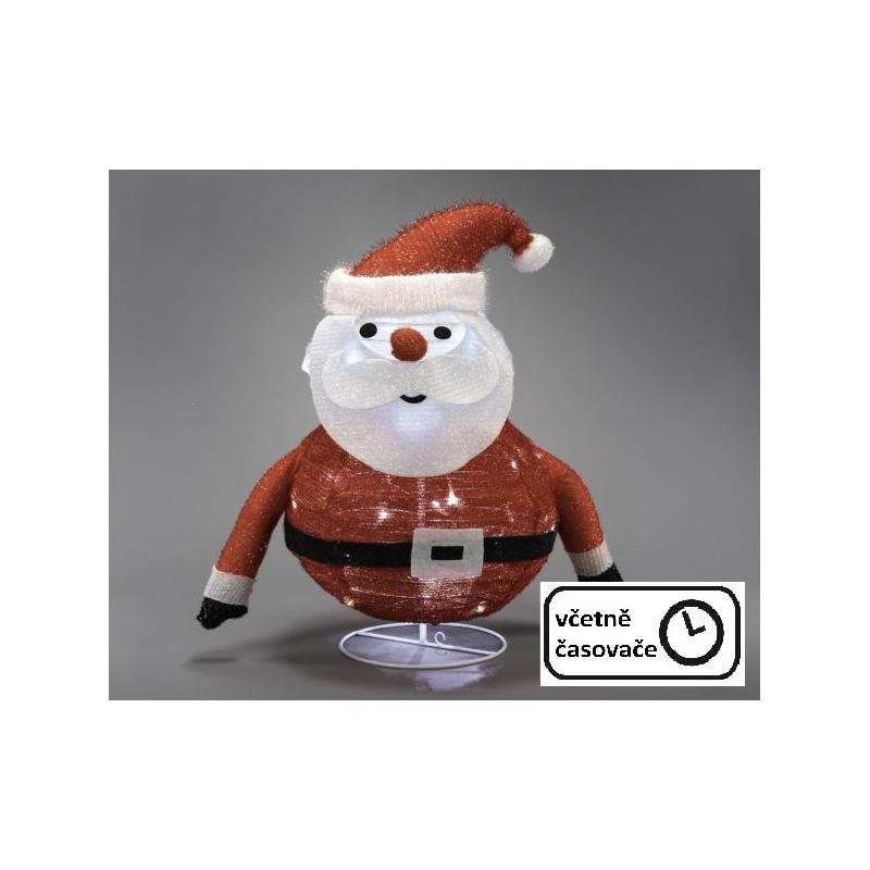 Osvětlená vánoční figurka Santy Clause určená pro vnitřní i venkovní použití, která je tudíž vhodná před dům, na terasu, zahradu, ale i kamkoliv do interiéru. Je napájena bateriemi (3xAA - klasické tužkové) a vybavena časovačem, který ji může v pravidelných intervalech zapínat a vypínat. Výška 58 cm (včetně stojanu).