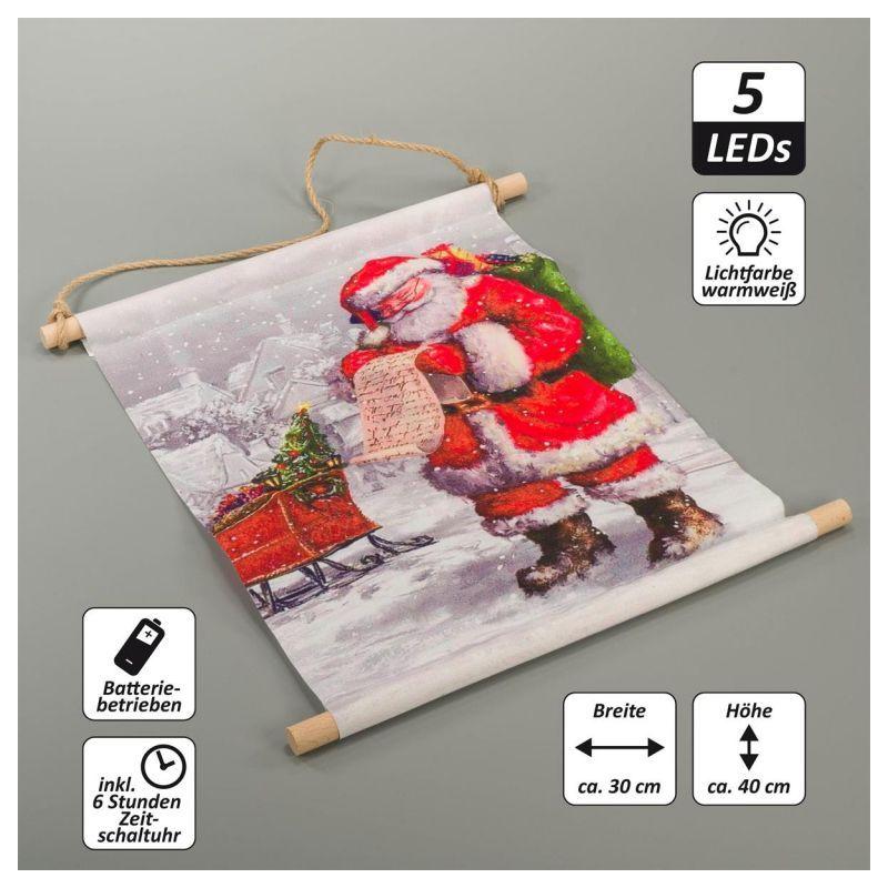 Nástěnný obrázek s osvětlením a vánočním motivem Santy Clause o rozměrech 30x40 cm (šířka x výška).