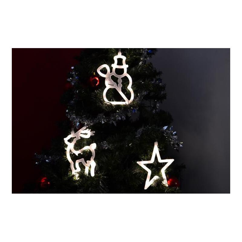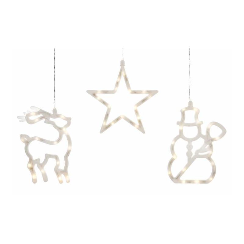 Sada 3 kusů závěsných svítících dekorací (sněhulák, hvězda, sob) vyrobených z plastu. Materiál obsahuje svítivé LED diody, které po zapnutí rozzáří figurku i blízké okolí.