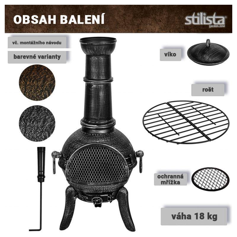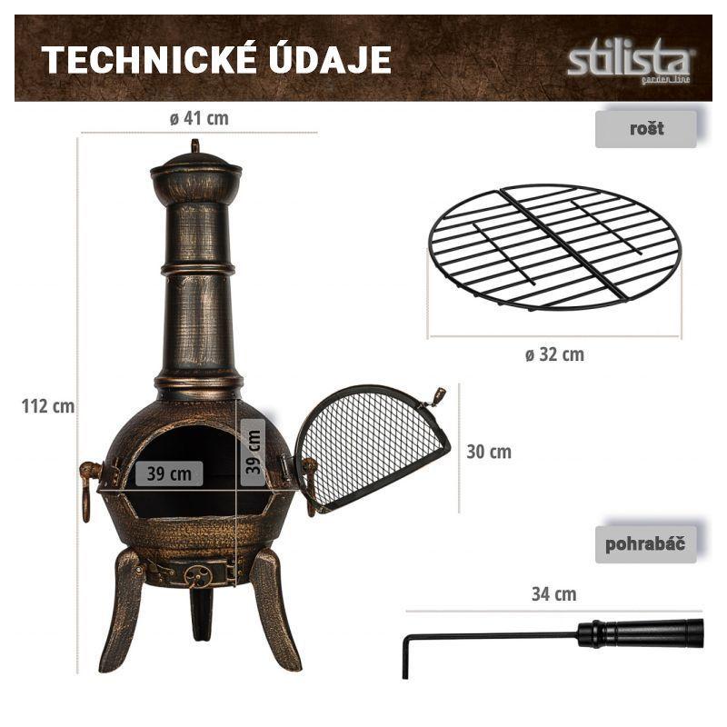 Součástí dodávky je i grilovací rošt, pohrabáč a odnímatelná horní poklička proti zatékání vody.